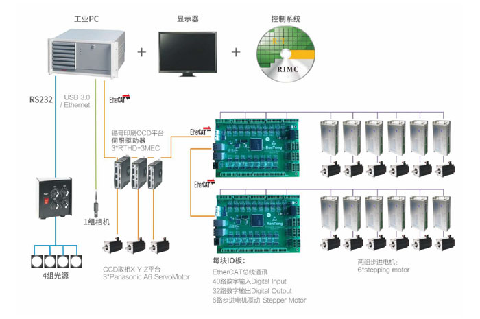 基于PC架構的控制解決方案,将人機交互軟件、視覺處理(lǐ)軟件、工(gōng)控下位機軟件、CODESYS平台的系統集成在RIMC中(zhōng),以适配不同的外部設備。